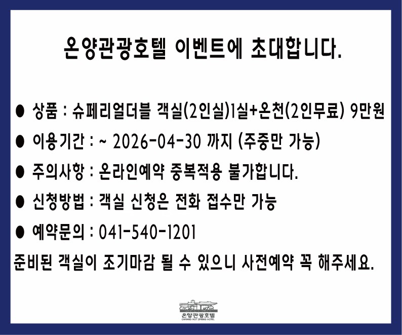 온양관광호텔은 찬란한 온천 문화를 품은 아름다운 유럽풍 정원 속에 지어진 관광호텔로, 최고의 온천을 통한 고객님께 life healing 그리고 여행의 기쁨과 추억의 가치를 드립니다.